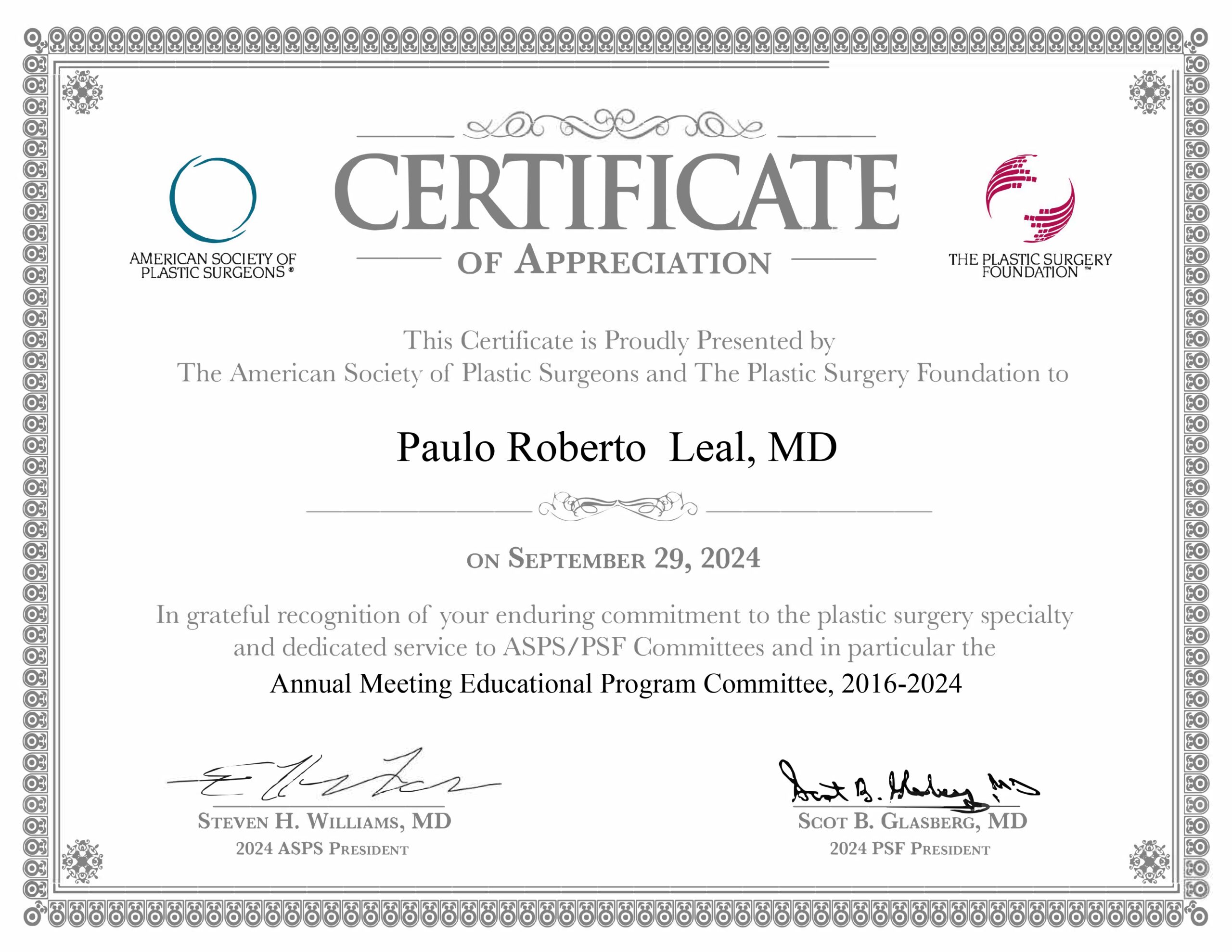 Além de sua experiência prática com mais de 30 anos de dedicação à cirurgia plástica e reconstrutiva, marcada por uma sólida formação acadêmica e uma vasta experiência internacional, o Dr. Paulo Leal é reconhecido por seu papel na educação e formação de novos cirurgiões, tendo chefiado o Serviço de Cirurgia Plástica e Microcirurgia Reconstrutiva do Instituto Nacional de Câncer (INCa) por um longo período, se afastando para emprestar seus conhecimentos no desenvolvimento das modernas técnicas de Plásticas Reconstrutoras Mamárias na Universidade do Estado do Rio de Janeiro agregado ao serviço de Cirurgia Plástica.
